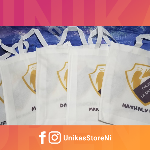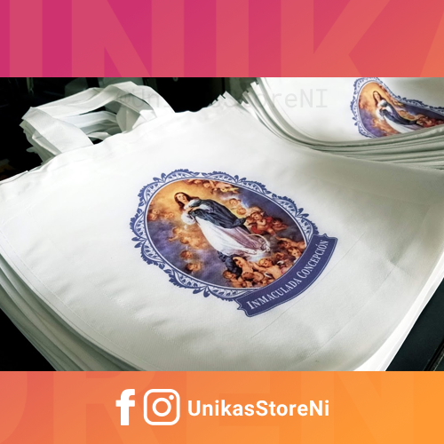 Bolsas ecológicas blancas 38x38cm personalizadas a color 1 cara. Paquete 25 unds