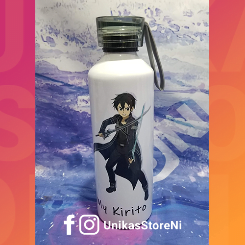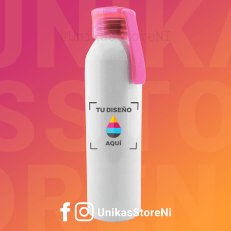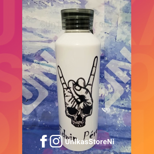 Botella metálica 600ml de acero inoxidable con tapa rosca plástica y correa de silicona.