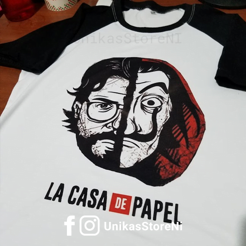 Camiseta blanca estilo beisbolera cuello redondo mangas de color (corta, 3/4 o larga) tela tacto algodón (mezcla con poliester), tallas juveniles #2 – #14, unisex S – XL. Nota: En tallas especiales XXL y XXXL el precio varia.
