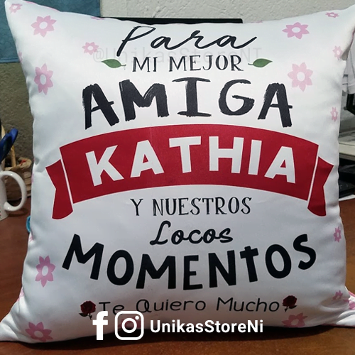 Cojin blanco 38x38cm personalizado 1 cara. Incluye funda impresa y relleno.