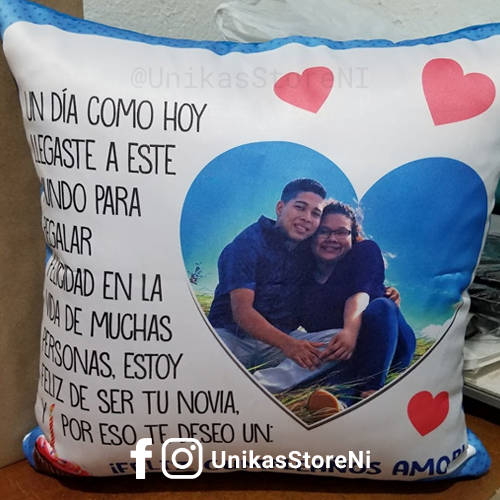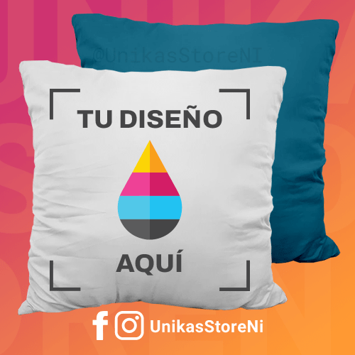 Cojin personalizado 40x40cm blanco impreso a 1 cara, reverso tela de color.