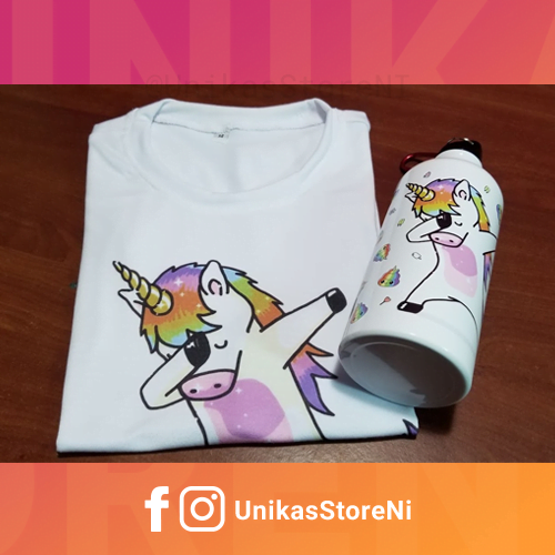 Dúo camiseta blanca y botella deportiva 600ml. de acero inoxidable con tapa rosca, colores blanco y silver. Camiseta en tallas juveniles #2 – #14, unisex S – XL. Nota: En tallas especiales XXL y XXXL el precio varia.