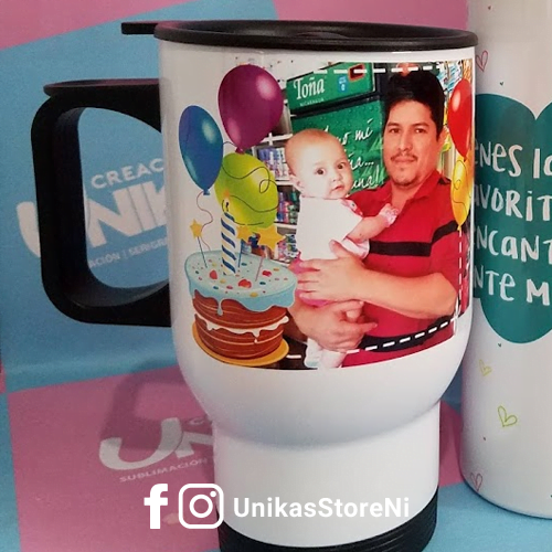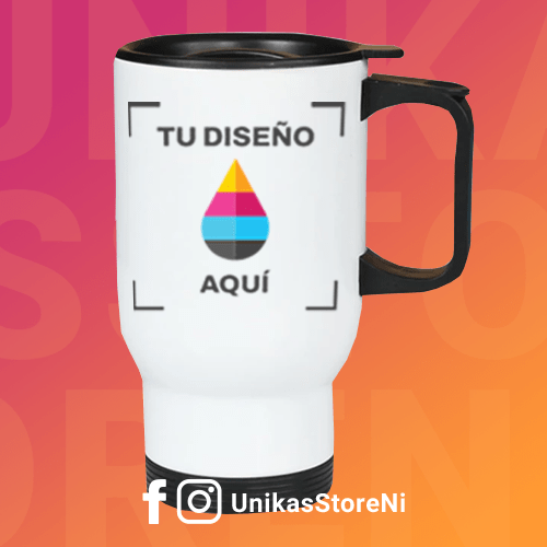 Jarra metálica viajero 16oz térmica de acero inoxidable, colores blanco y silver.