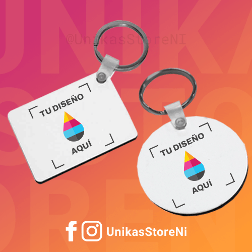 Llaveros personalizados metálicos ó formica, formas variadas.