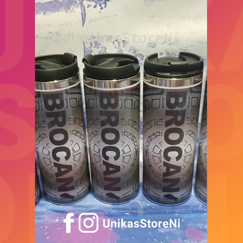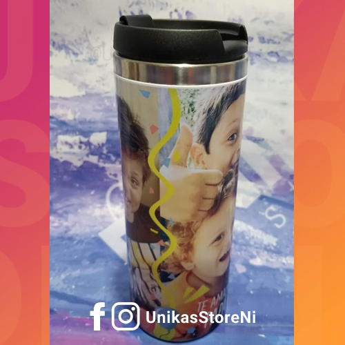 Termo metálico 450ml doble pared de acero inoxidable con tapa rosca.