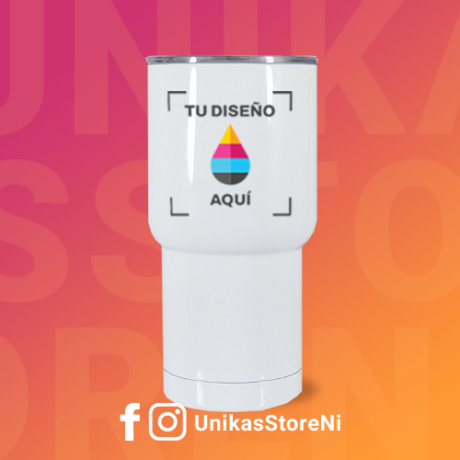 Vaso metálico viajero 18oz doble nivel térmico de acero inoxidable con tapa plástica.